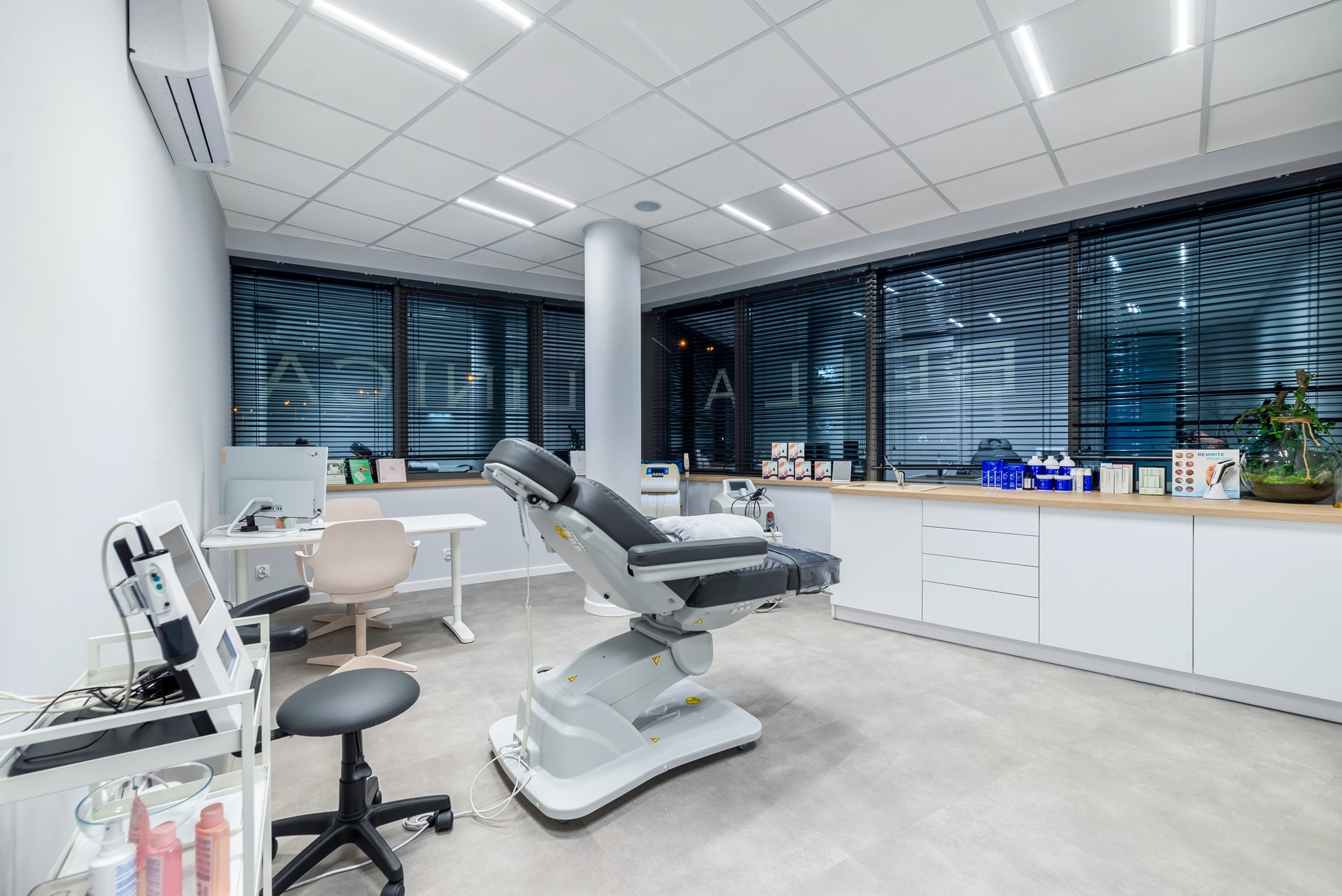 Kompleksowa realizacja wielospecjalistycznej kliniki mieszczącej się na gdańskim Przymorzu. Zakres prac obejmował: projekt wykonawczy i branżowy, uzgodnienia (PPOŻ, san-epid), prace: instalacyjne, budowlane, wykończeniowe, ściany szklane, stolarka meblowa.