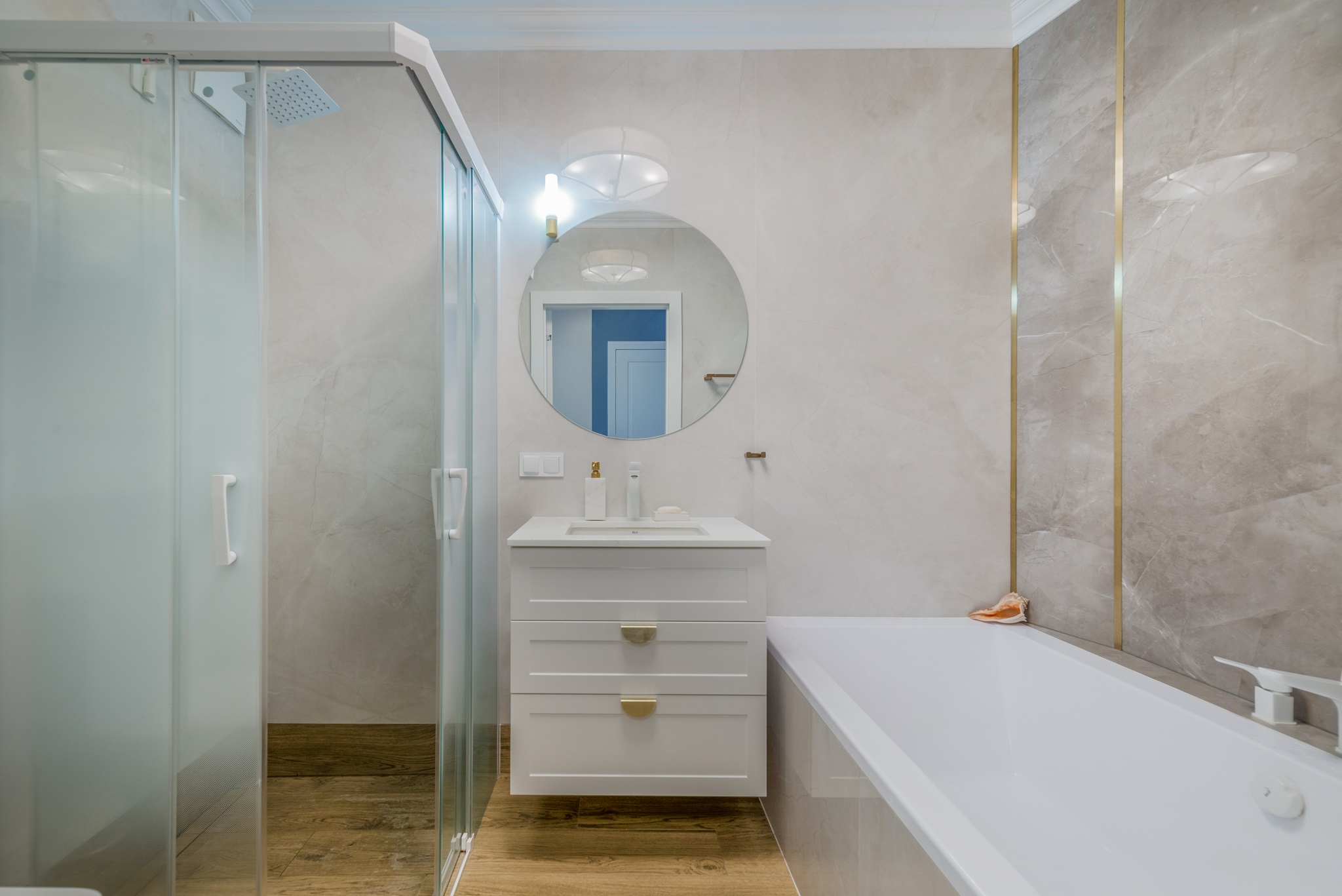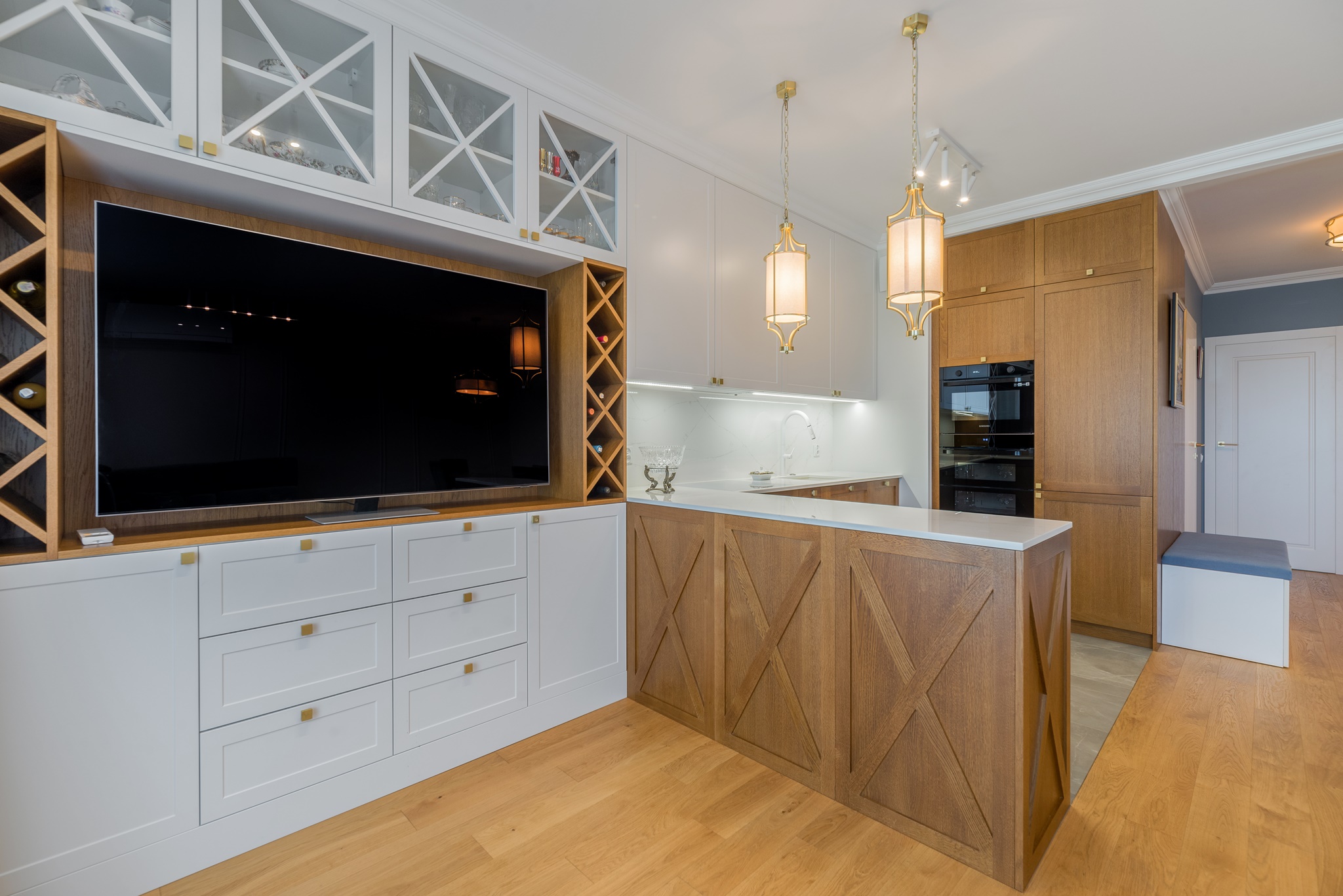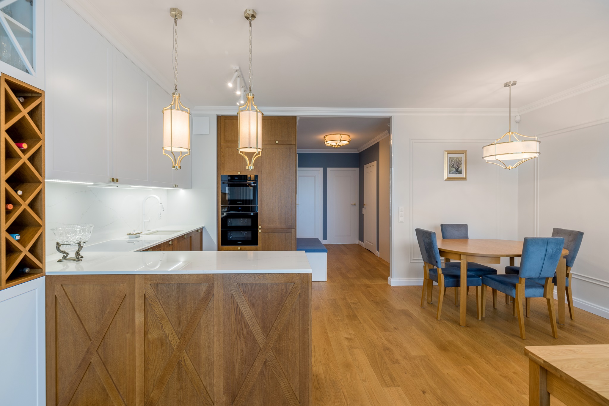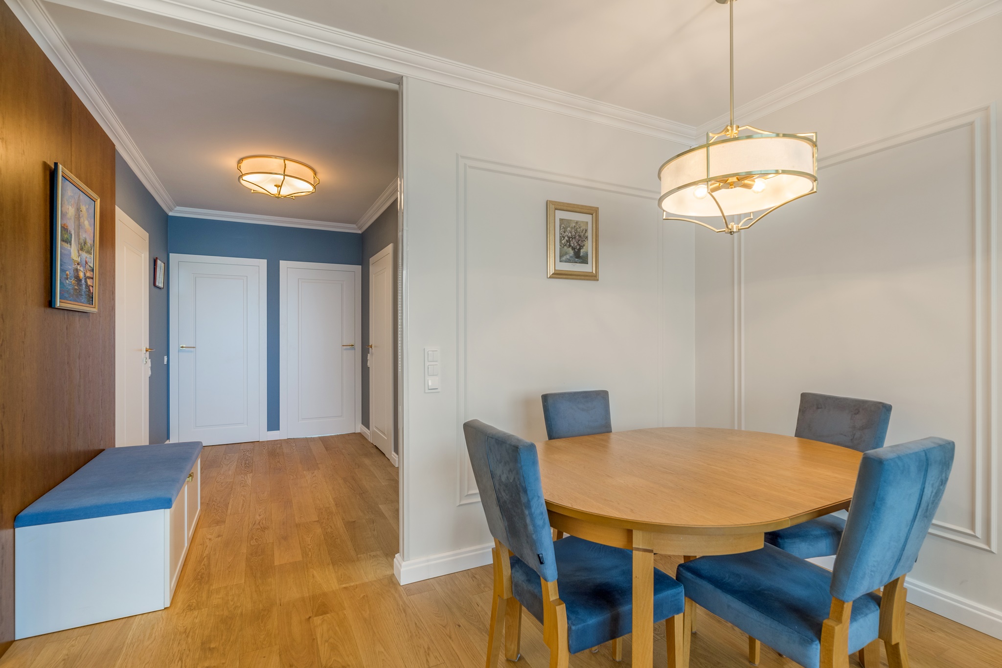 Kompleksowa realizacja od projektu pod klucz trzypokojowego apartamentu znajdującego się w centrum Pruszcza Gdańskiego. Zakres prac obejmował od projektu wykonawczego przez prace remontowo-budowlane, instalacyjne, wykończeniowe, instalację klimatyzacji, zabudowy stolarskie aż po montaż zasłon i dodatków.